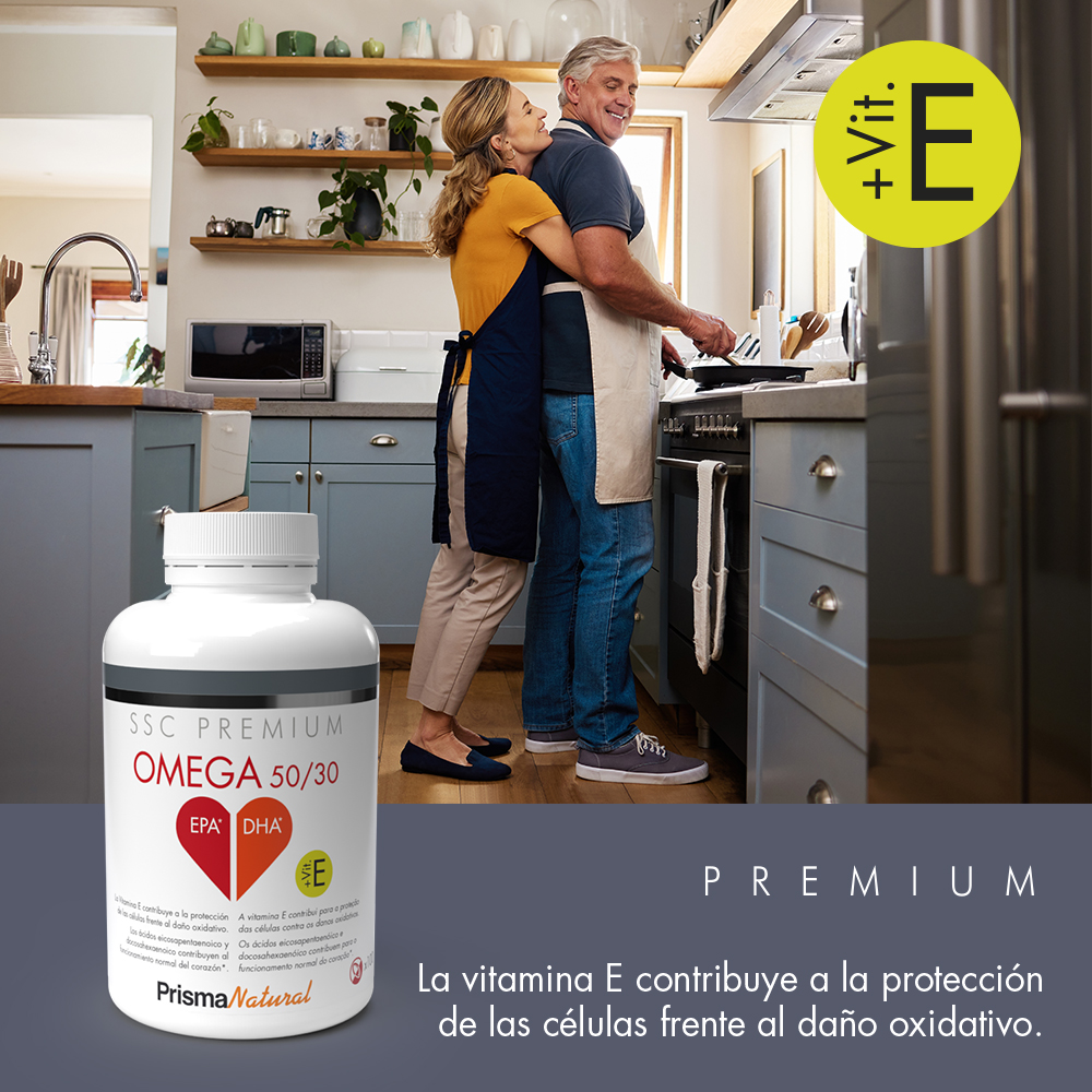 Su contenido en vitamina E dota al Omega 3 50/30 de propiedades antioxidantes que protegen las células del organismo frente a la acción oxidativa de los radicales libres.