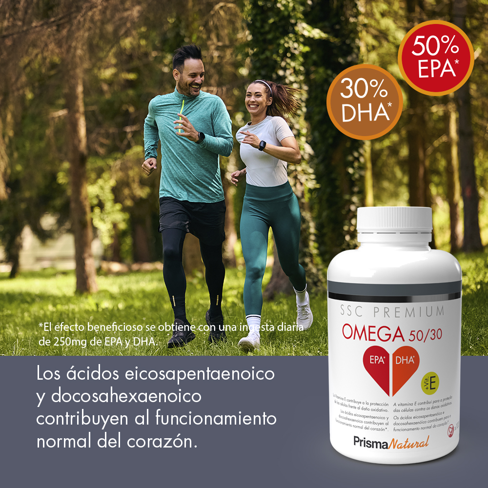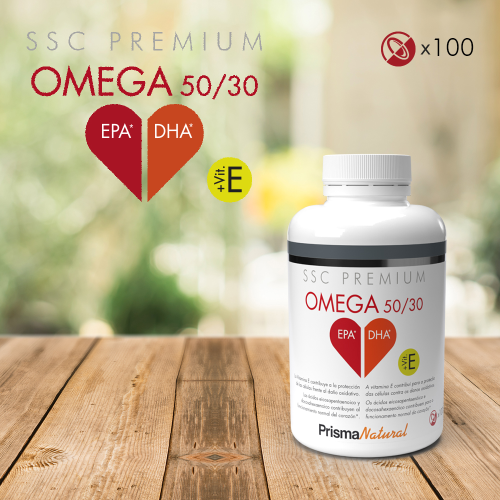 El Omega 50/30 es un complemento alimenticio basado en ácidos grasos Omega 3 con la mayor concentración de EPA (50%) y DHA (30%) que existe en el mercado. Los ácidos grasos DHA y EPA contribuyen al funcionamiento normal del corazón. Además, el Ácido Docosahexaenoico o DHA contribuye a mantener el funcionamiento normal del cerebro y al mantenimiento de la visión en condiciones normales.