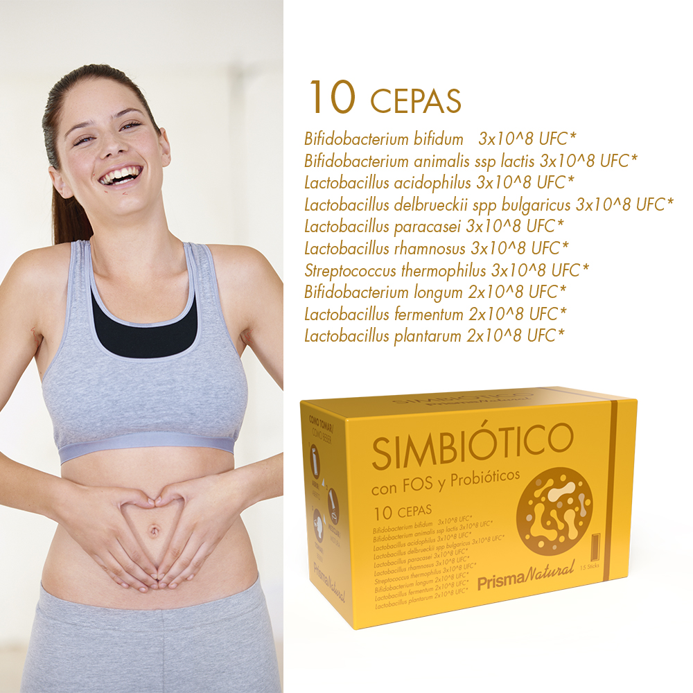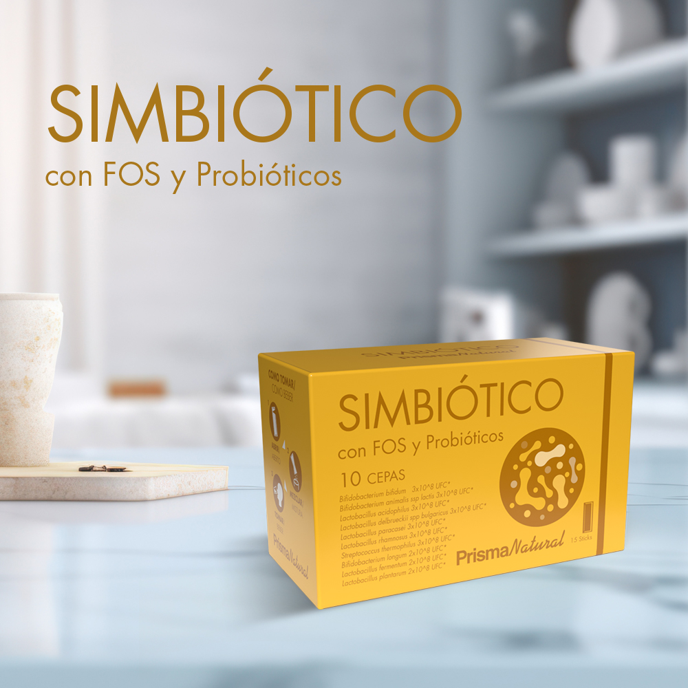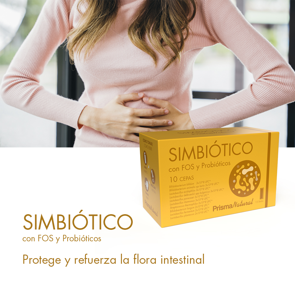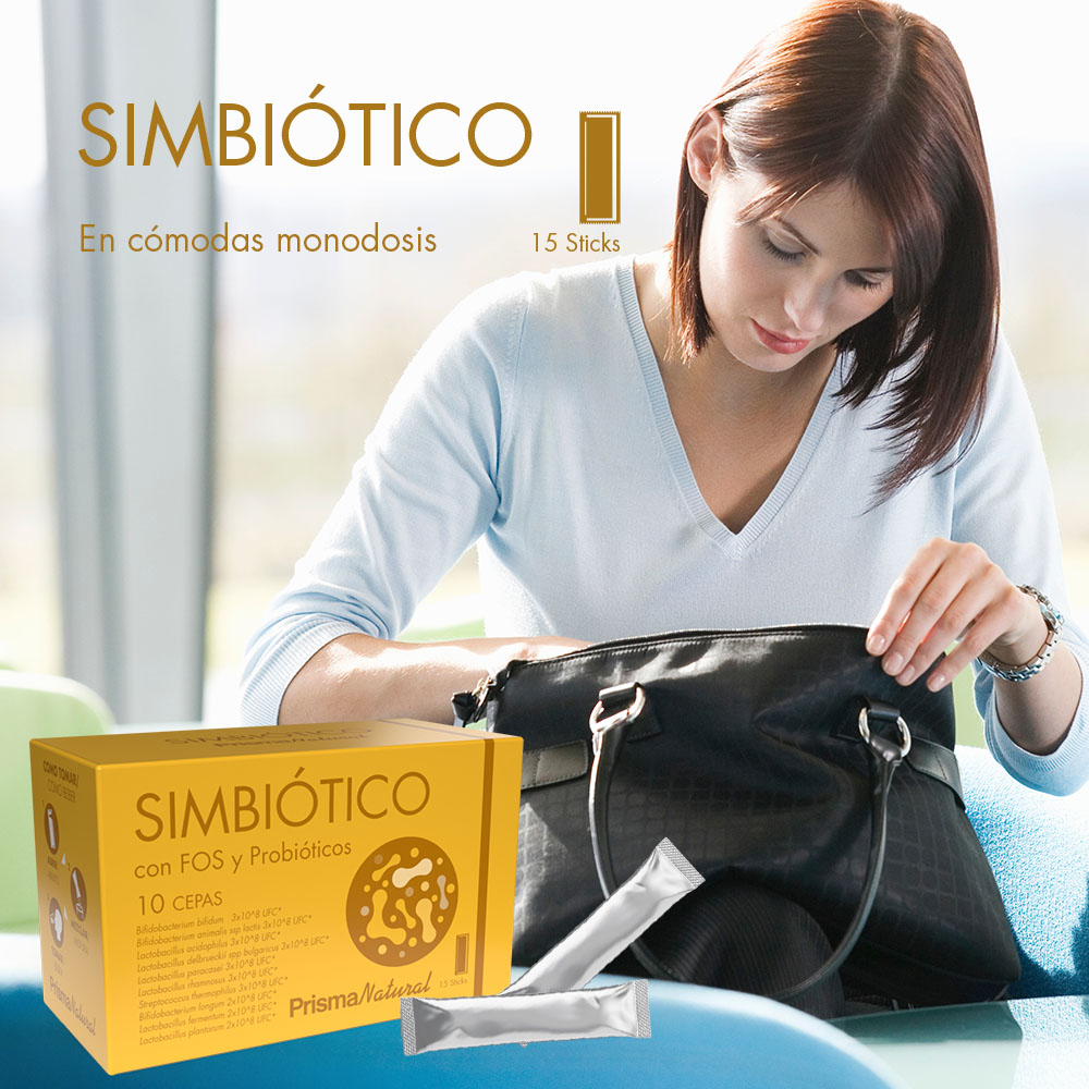 Simbiótico es un complemento alimenticio formulado a base de Prebióticos FOS o Fructooligosacáridos y una amplia variedad de bifidobacterias y lactobacilos, que se complementan protegiendo y reforzando la flora intestinal, incrementando así la calidad de vida.